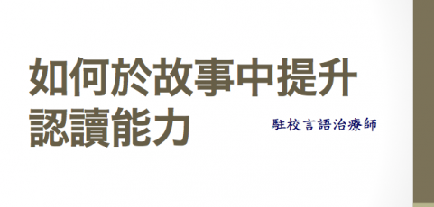 週四16 言語治療-學童語言發展-家長講座-POWERPOINT 刊登 日期 16/10/2014 如何提升孩子的語言能力: 給予孩子適當的言語環境及鼓勵 多描述正在進行的事情 多描述孩子正在注意的事物 耐心聆聽孩子的說話 即時回應孩子的說話 多加鼓勵及讚賞... 更多…